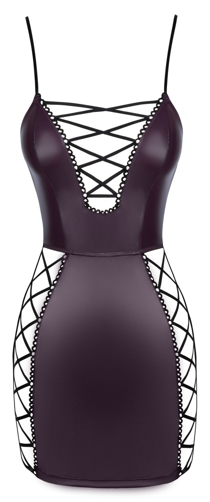 Ontdek dit verleidelijke mini-jurkje uit de Cottelli Collection, uitgevoerd in donkerpaars wetlook. Het glanzende materiaal benadrukt je rondingen op een sensuele manier en trekt zeker de aandacht. De uitdagende vetersluitingen en verstelbare bandjes zorgen voor een perfecte pasvorm, zodat jij je op je best voelt. Ideaal voor een spannende avond of een opvallende verschijning in clubwear!